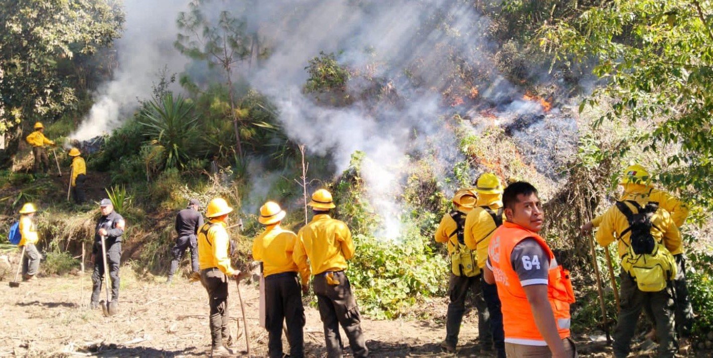 A las tareas se sumaron elementos de la Comisión Nacional Forestal (Conafor), la Policía Forestal y personal de Protección Civil Municipal, quienes establecieron perímetros de seguridad para proteger a los combatientes y evitar la reactivación de los frentes activos.